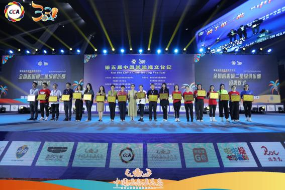 在第五届中国啦啦操文化纪,有来自全国200多个城市的近2400多名啦啦操代表共襄盛典,欢聚一堂。国家体育总局青少司发展指导处处长徐杰、国家体育总局体操中心副主任冯玉娟、海南省旅游和文化广电体育厅副厅长杨新利、国际啦啦操联合会秘书长Karl Olson、香港啦啦操协会会长殷浩然、央视知名主持人韩乔生、排球奥运冠军徐云丽、蹦床奥运冠军陆春龙等出席了本次活动。
