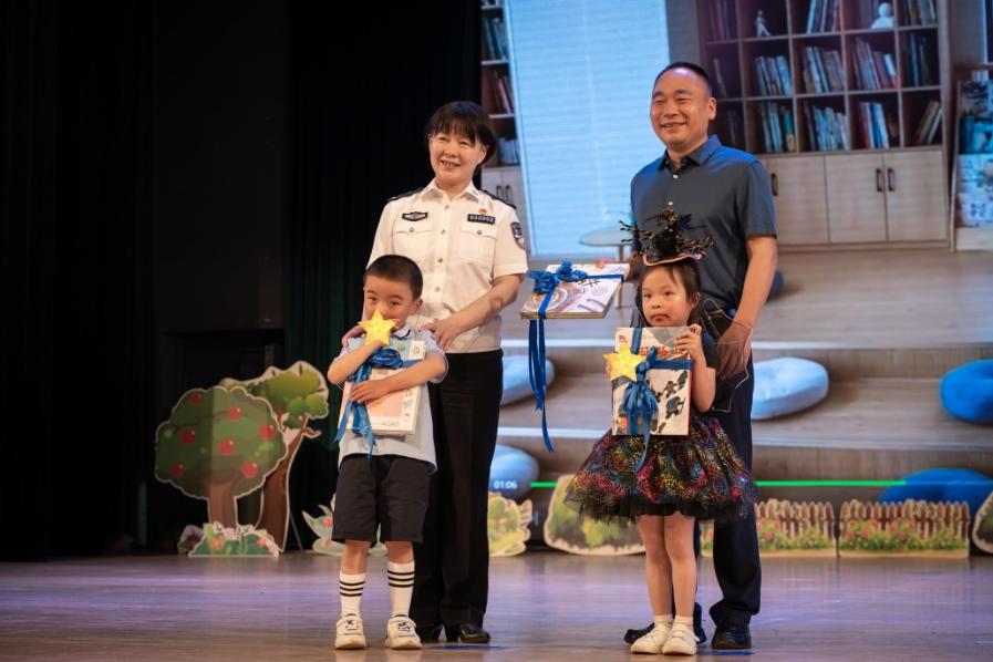 在这个快乐的日子里,我园共建单位国家移民管理局常备力量第二总队给孩子们送来了530余册儿童绘本,国家移民管理局常备力量第二总队政治委员章俊也亲临现场为孩子们送上绘本,昆明学院党委委员郭华副校长带着孩子们一同上台接受了这份温馨的节日礼物。