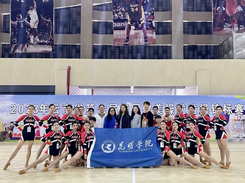 昆明学院Jungle Warriors啦啦操队代表队由来自学前与特殊教育学院的5名教练及20位运动员组成,啦啦操队运动员们秉承着“品德好、学习好、气质好、技术好”的四好理念,积极进取,努力拼搏、刻苦训练,用一次次的泪水与汗水换来赛场上的绚丽演出。经过激烈角逐,此次比赛一举拿下“集体花球自选动作”和“集体自由舞蹈自选动作”两项冠军!