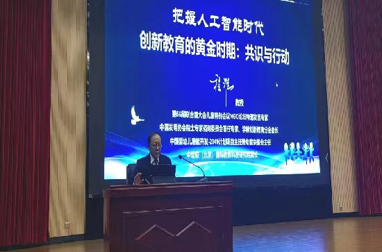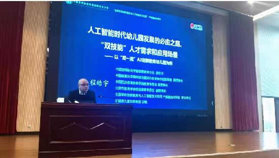 随后,北京市西城区政协委员、幸福泉儿童发展集团总裁程皓宇面向师生开展了题为“人工智能时代幼儿园发展的必由之路、‘双技能’人才需求和应用场景——以‘双一流’AI创新教育幼儿园为例”的讲座。