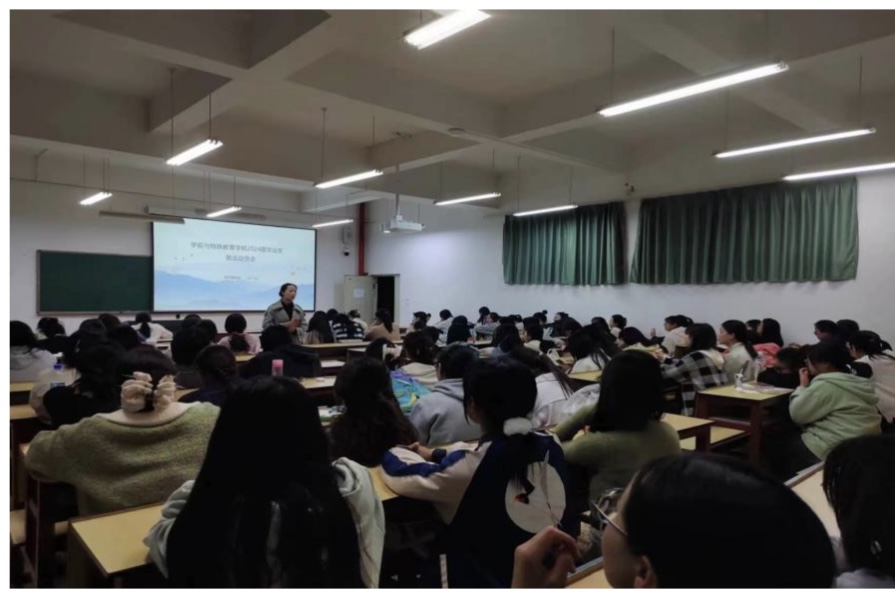 2024年3月12日、13日,学前与特殊教育学院分别在昆师路校区、洋浦校区召开2024届毕业生就业动员推进大会,全体2024届毕业生520人参加会议。会议由辅导员尹艳波老师主持,刘娟娟书记、张晓晨副书记全程参加并作了动员讲话。本次大会旨在帮助全体毕业生更好地了解当前就业形势和动态,帮助树立正确的就业观,以饱满的精神状态投入到求职中。