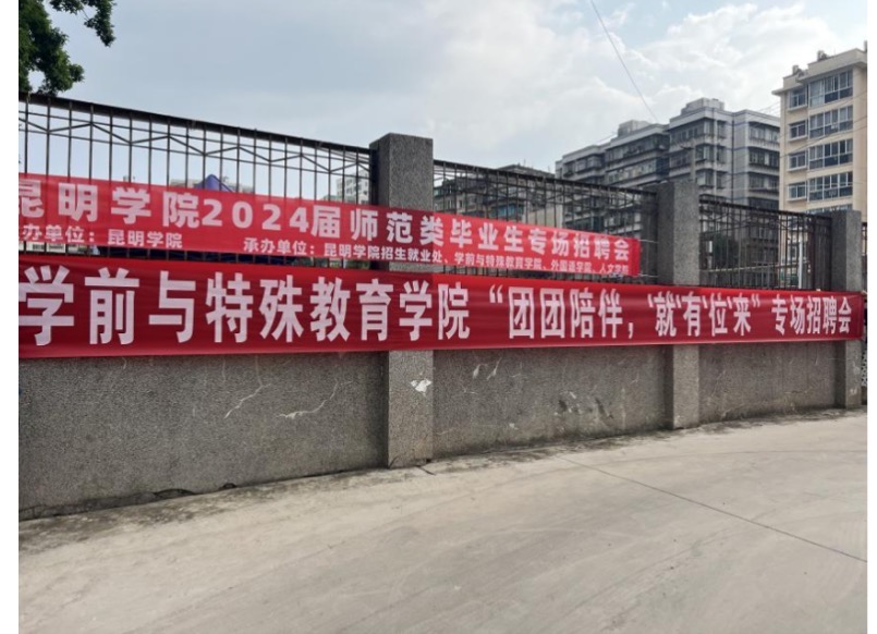 2024年5月15日,昆明学院2024届师范类毕业生专场招聘会暨学特学院“团团陪伴,‘就’有‘位’来”招聘会在昆师路校区举办,本次招聘会由学前与特殊教育学院、外国语学院及人文学院承办,共涉及学前教育、特殊教育、英语教育、汉语言文学等师范类专业,招聘会邀请了80多家用人单位,共提供了一千余个就业岗位。