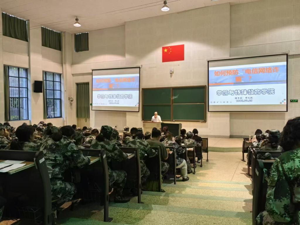 2024年9月5日19:00,学前与特殊教育学院组织2024级331名学生在博雅楼3101开展了新生入学教育之预防电信网络诈骗知识的安全教育专题讲座。辅导员邓文跃老师向同学们详细介绍了近两年校园发生电信诈骗的情况,并对真实发生的诈骗案例进行了总结归纳,指出诈骗分子惯用套路,提醒同学们从大一开始牢固树立安全意识,不要抱有侥幸心理,时刻保持警惕,根据现实与网络中的案例吸取经验教训,避免电信诈骗案件发生。
