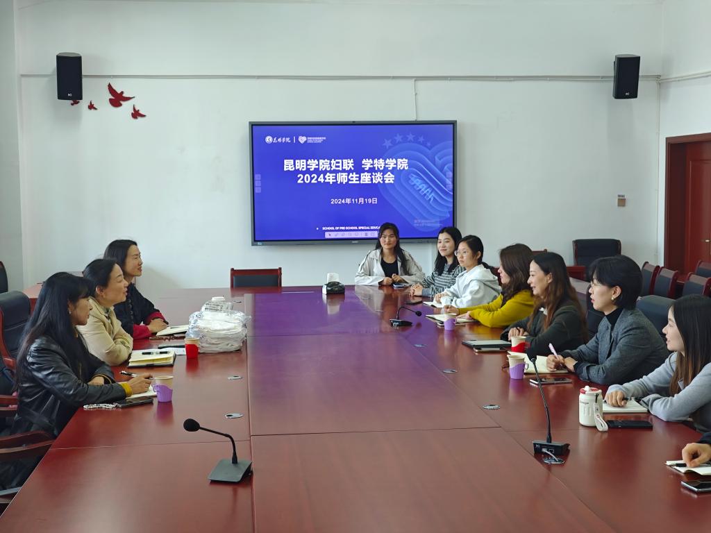 11月19日下午,昆明学院妇联主席冯娟、学生处副处长刘艳萍一行到学特学院开展2024年师生交流座谈会。学特学院党委书记刘娟娟、党委副书记张晓晨、团委书记谢燕及8名学生代表参加座谈。