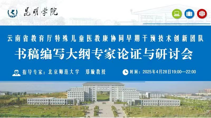 2025年4月28日晚,学前与特殊教育学院组织了“云南省教育厅特殊儿童医教康协同早期干预技术创新团队书稿编写大纲专家论证与研讨会”暨博乐讲坛第18讲。本次活动邀请到了北京师范大学教育学部博士生导师郑璇教授作为指导专家,主要围绕创新团队4部书稿编写内容进行论证与研讨;学院特殊教育教研室主任陈晓副教授主持会议,团队成员、学院教师、研究生、特教专业本科生参与了活动。
