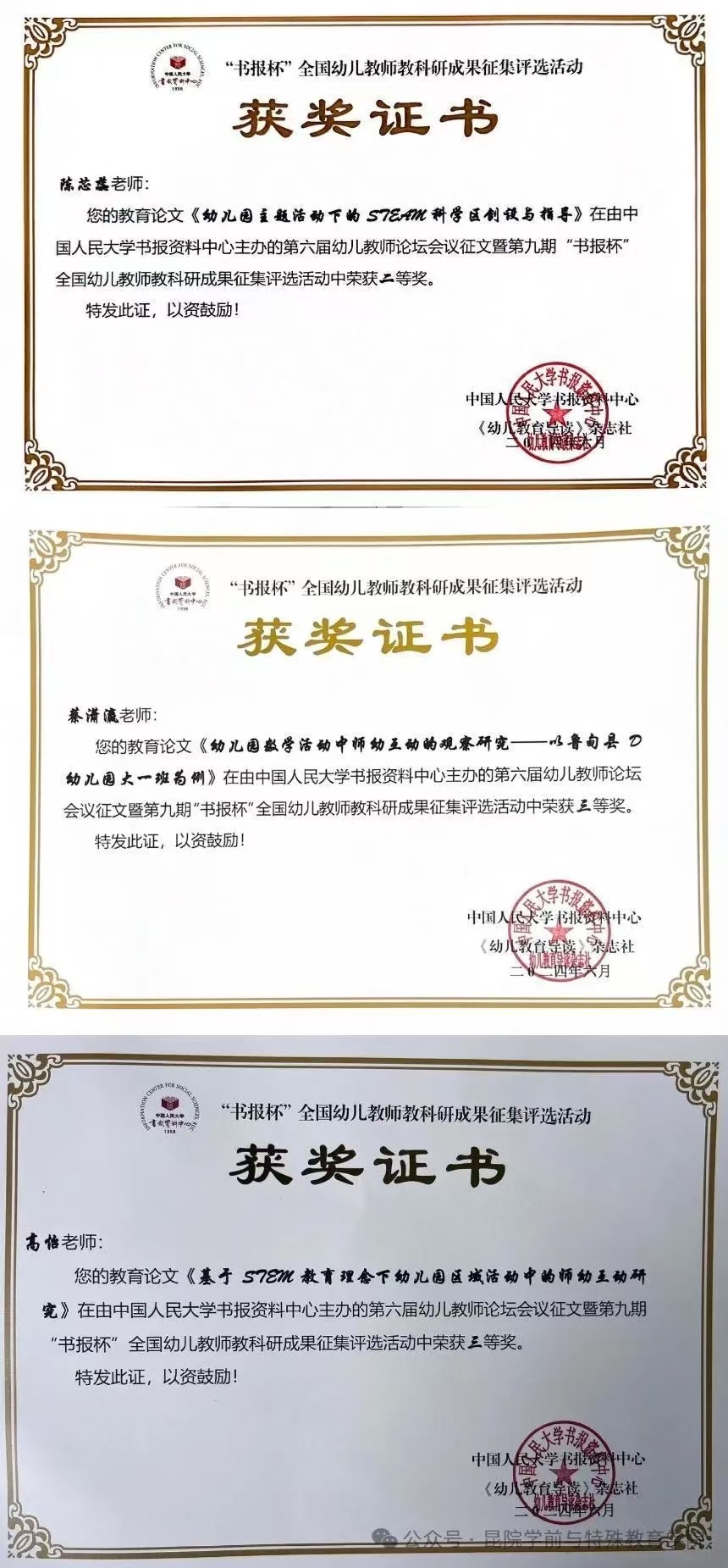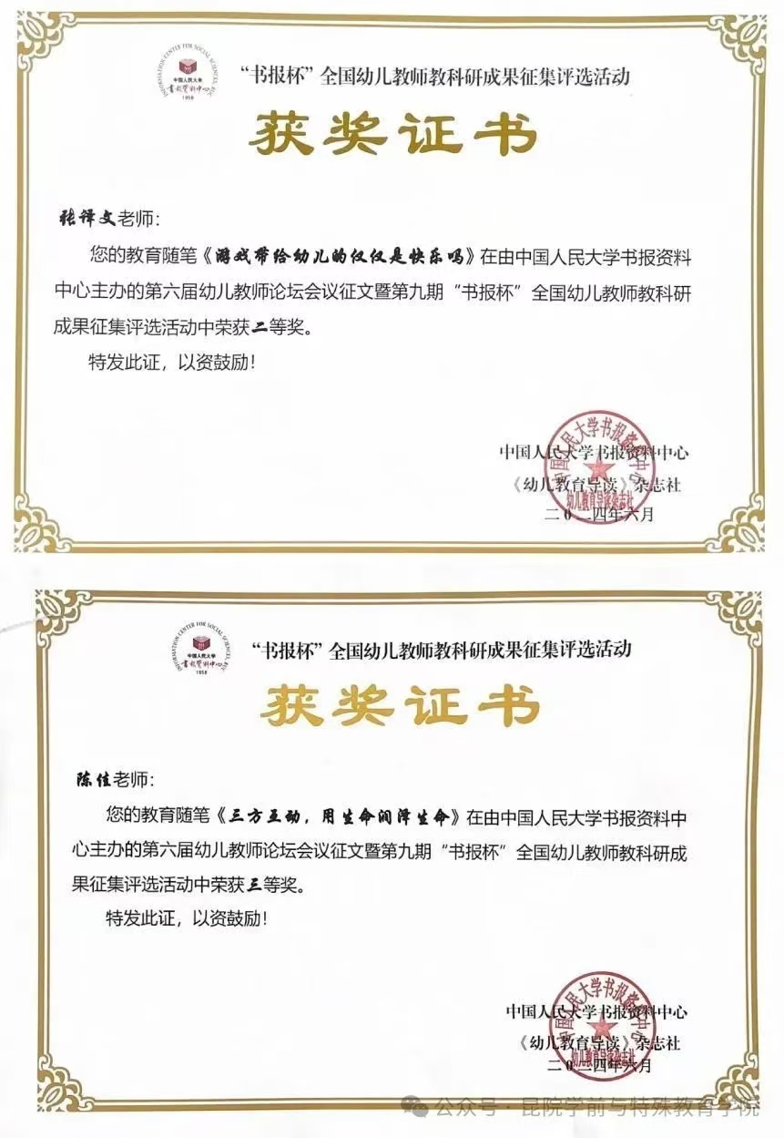 在中国人民大学书报资料中心《幼儿教育导读》杂志社主办的第六届幼儿教师论坛会议征文活动中,学前与特殊教育学院组织研究生积极参与,展现出了较高的学术热情和扎实的专业素养,取得了突出的成绩。其中:颜娅获教育论文一等奖,钱晨、周云娟、陈芯蕊、吴岩获教育论文二等奖,蔡潇瀛、高怡获教育论文三等奖,张译文获教育随笔二等奖,陈佳获教育随笔三等奖。这些成绩的取得,不仅是对他们个人学术能力的肯定,更是对学院研究生教育质量的充分认可。