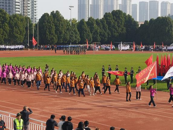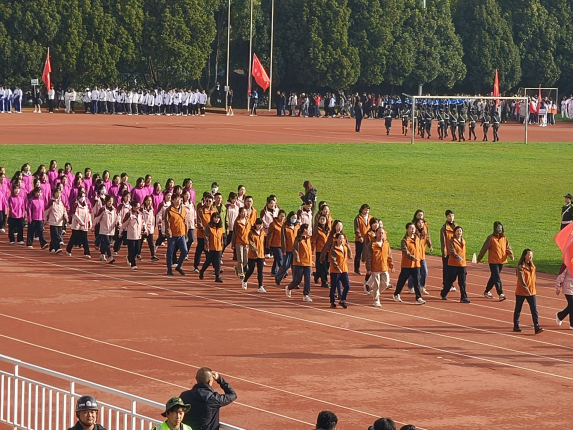 由学特学院负责的鲜花队员们手持鲜花,以优雅的姿态和整齐的步伐走过操场,为运动员们送上最真挚的祝福。
