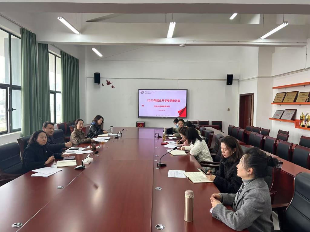 2025年3月7日,学前与特殊教育学院为推动2025届毕业生就业升学工作,在博学楼514召开春季学期就业升学专题推进会。学院领导班子成员、全体毕业班班主任、就业辅导员及考研升学工作负责人参会。
