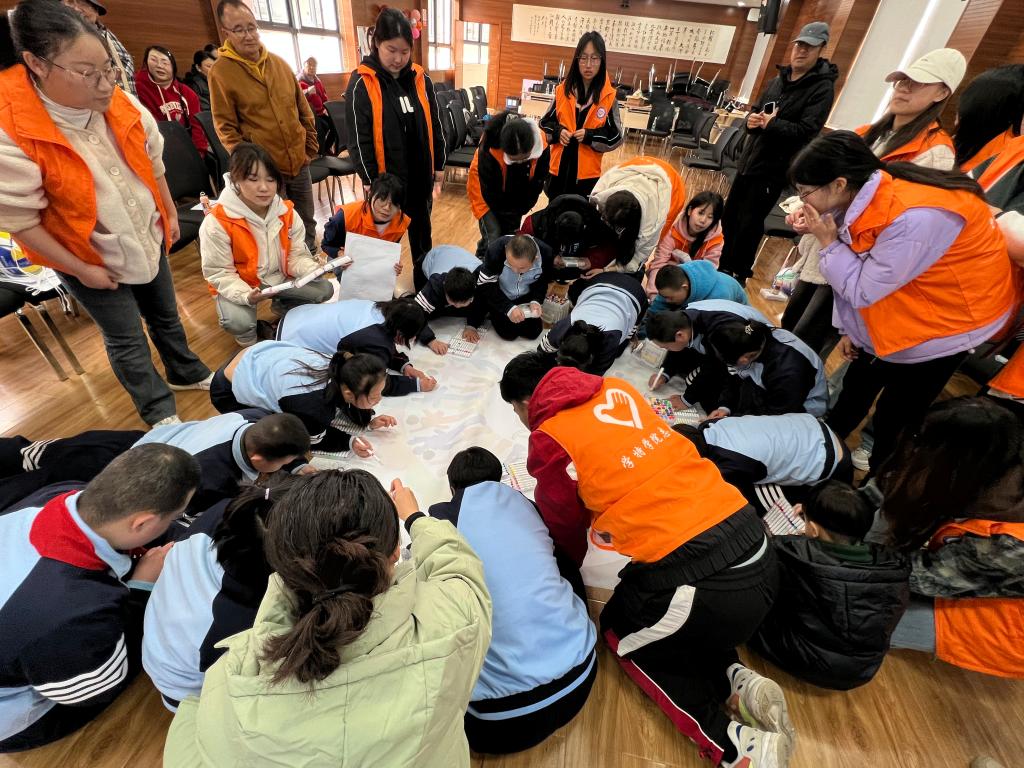 活动围绕“糖宝宝艺术团”专场演出、心理健康团辅课、师生“共绘美好未来”等多种形式展开。志愿者们充分发挥专业优势,利用专业知识与技能为特殊儿童送去关爱与温暖。在师生“共绘美好未来”活动环节,志愿者们与“糖宝宝”们共同绘制巨型公益画作,通过艺术共创,诠释“平等、参与、共享”的教育理念。学特学子用行动诠释了雷锋精神的时代内涵,充分展现了青年志愿者们朝气蓬勃、积极向上的良好风采。