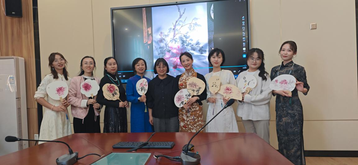 活动开始,指导老师向全体教师介绍了国画的演化史、分类鉴赏及国画扇面画法技巧。帮助老师们了解中华传统文化的内涵,进一步激发了老师们对扇面绘画的兴趣。全体老师身着优雅的国风服饰,手持画笔,在专业老师的指导下,亲笔描绘多姿多彩的扇面,将心中美丽的春景,以小写意的画风融进了优雅的扇面中。